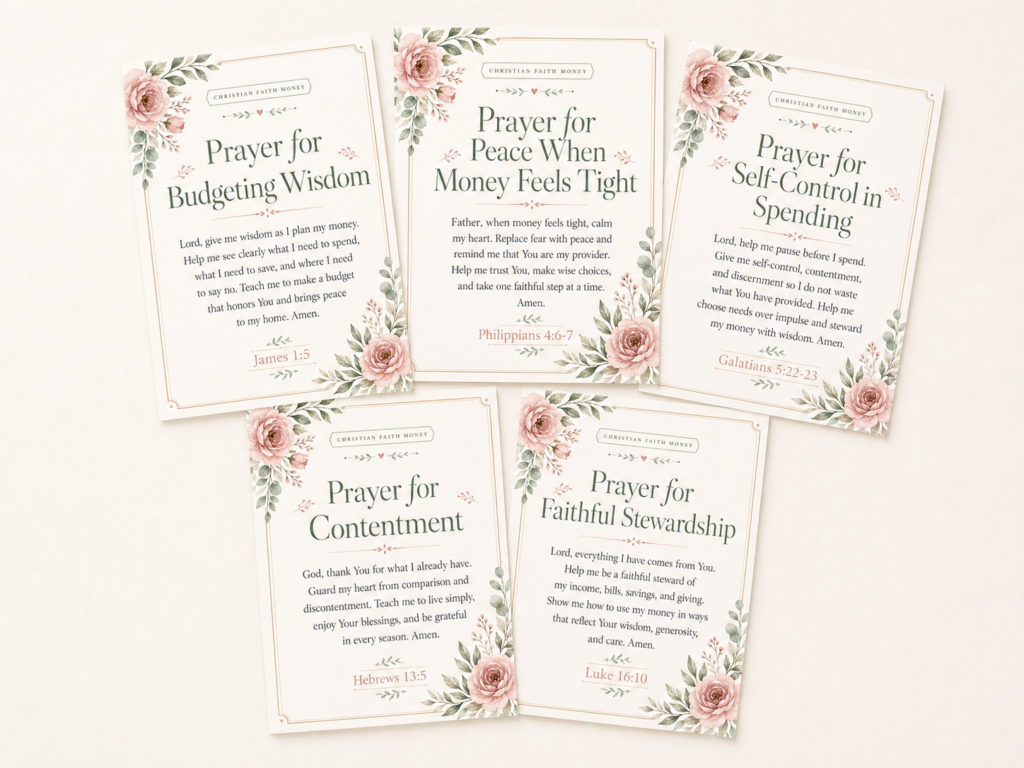 You can print them, save them to your phone, tuck them into your Bible, keep them near your budget planner, or use them during your weekly money routine.